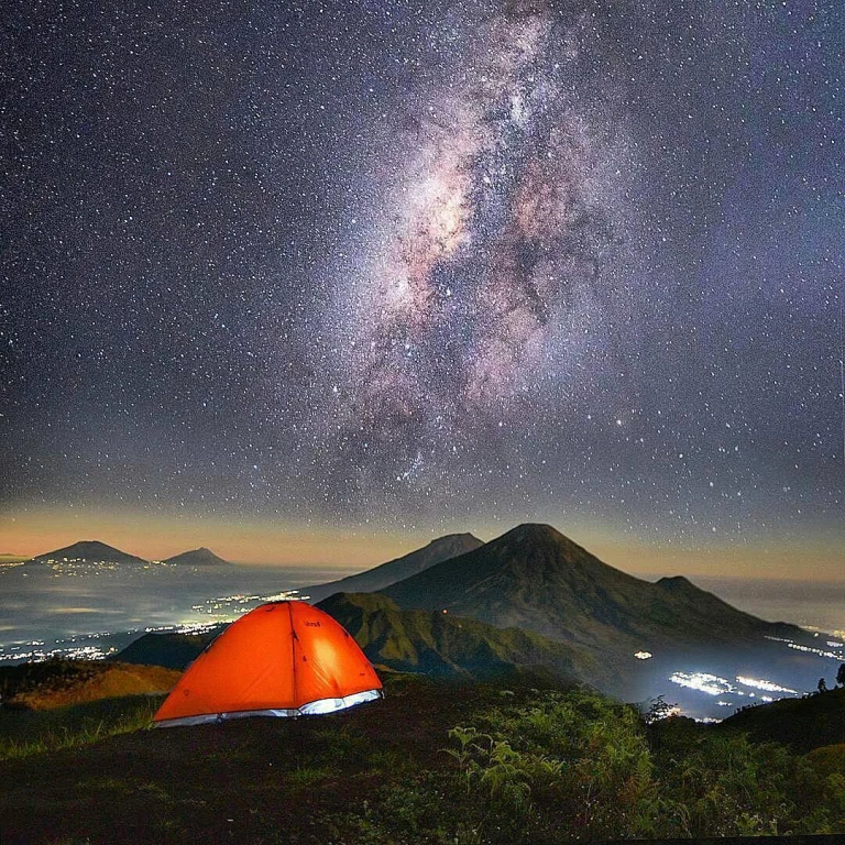 –🌾 Deskripsi: Saat malam tiba, Gunung Prau menawarkan langit gelap tanpa polusi cahaya, menghadirkan miliaran bintang yang terlihat jelas. Sangat cocok untuk astrofotografi.